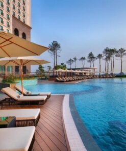 Along with more than 300 European-style villas, a 1,500-seat international convention center, an 18-hole golf course, a club house, an infinity pool, and more than 100 amenities that meet international standards, this retreat can accommodate over 1,500 guests in 649 suites.